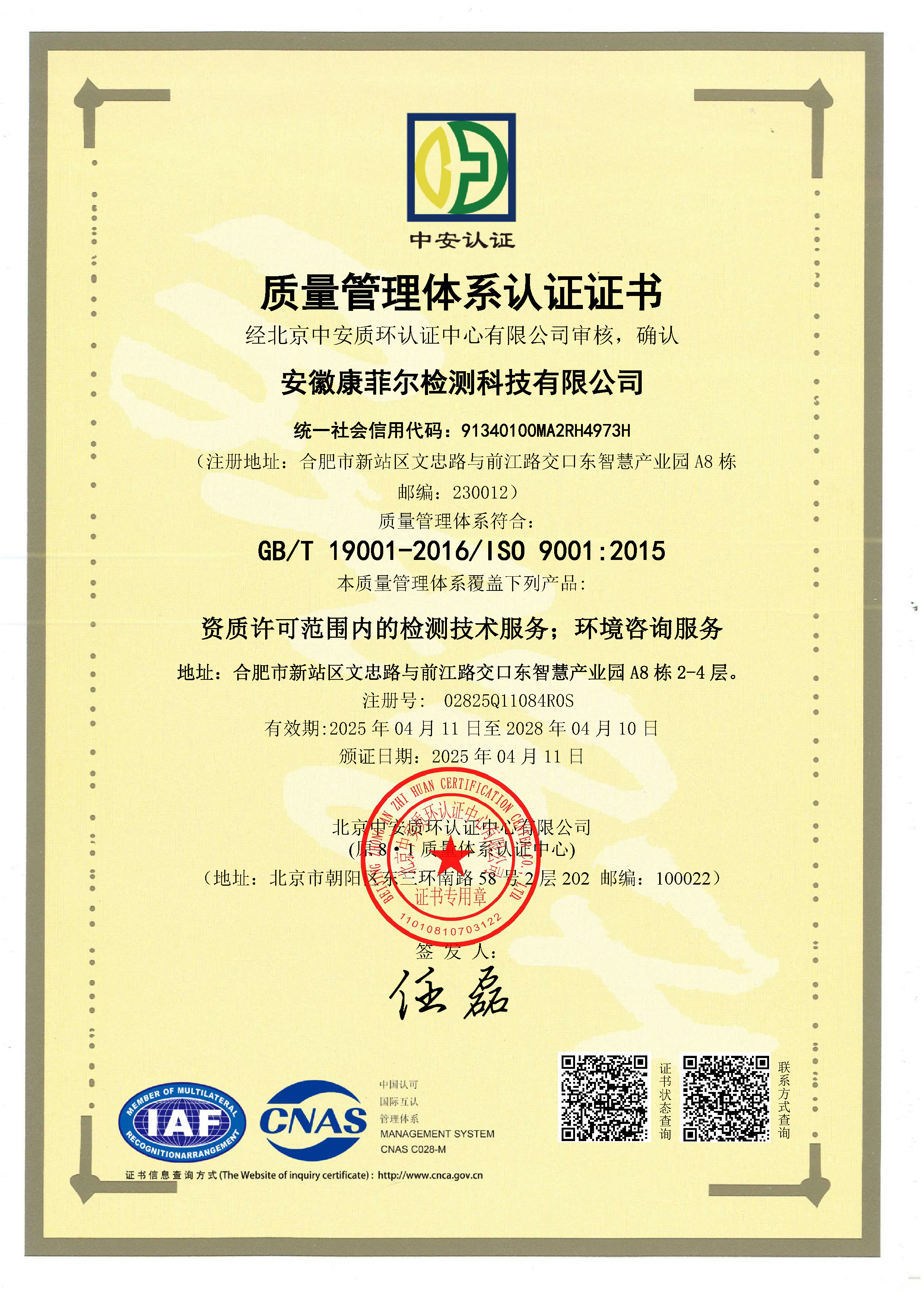 康菲爾檢測科技,組建于2016年,注冊成立于2018年,注冊資金2000萬,上市公司(股票代碼:688659)全資子公司。“雙C”(CMA&CNAS)認證認可實驗室、高新技術企業、科技型中小企業,通過了三標一體化體系認證,是環境保護領域的綜合型科技服務商。